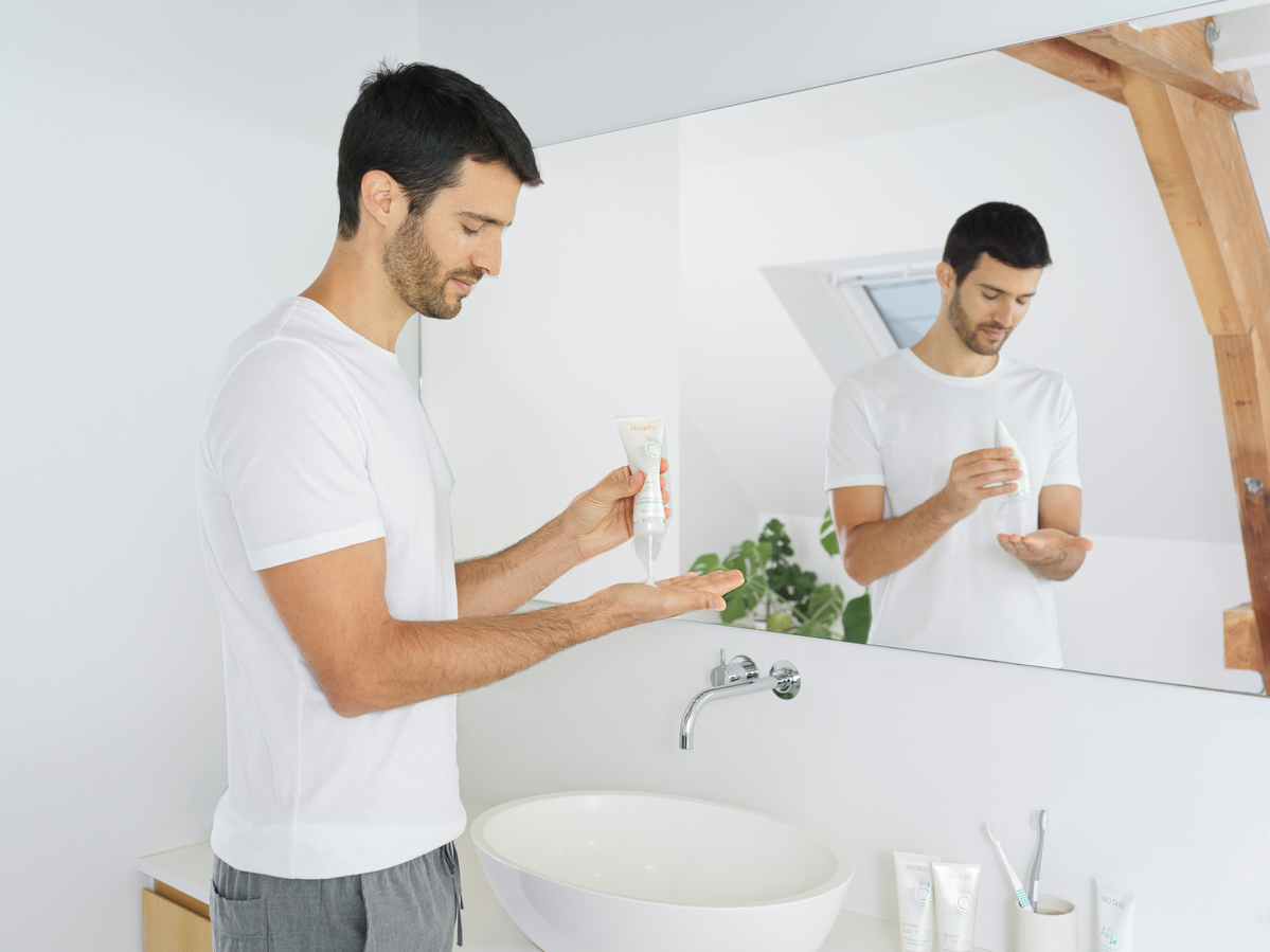 Use ageLOC LumiSpa iO System morning and night as your cleansing step. Wet your face with lukewarm water and then dispense an ample amount (bigger than an almond) of LumiSpa Activating Cleanser onto your hand. Apply evenly to your face and then cleanse with your LumiSpa iO device for two minutes. Follow with your preferred toner, serum, or any targeted skincare product and moisturiser.