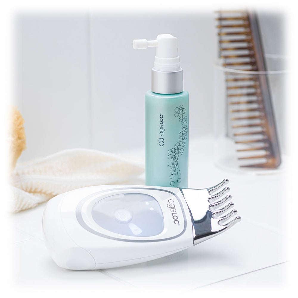 * Result(s) obtained after the combined use of the ageLOC Nutriol Intensive Scalp & Hair Serum twice daily followed by a two-minute ageLOC Galvanic Spa application together with the ageLOC Nutriol Shampoo and Conditioner as the regular hair wash routine.