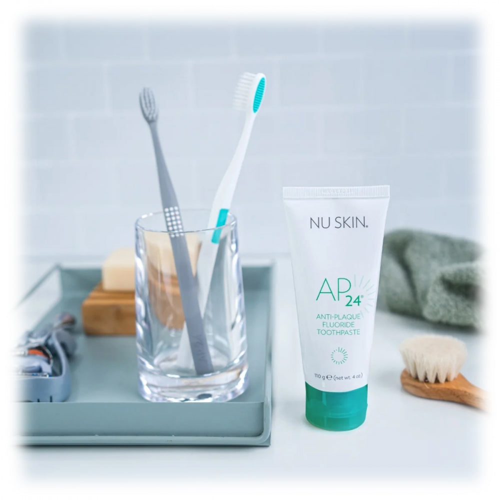 There’s no better feeling than the confidence that comes with a beautiful smile, and that’s precisely what you’ll get with AP 24 Whitening Fluoride Toothpaste. This Nu Skin favourite gently lightens teeth, helps prevent cavities and fights the formation of plaque, while its gentle, vanilla mint formula freshens breath for that long-lasting, clean, just-brushed feeling.