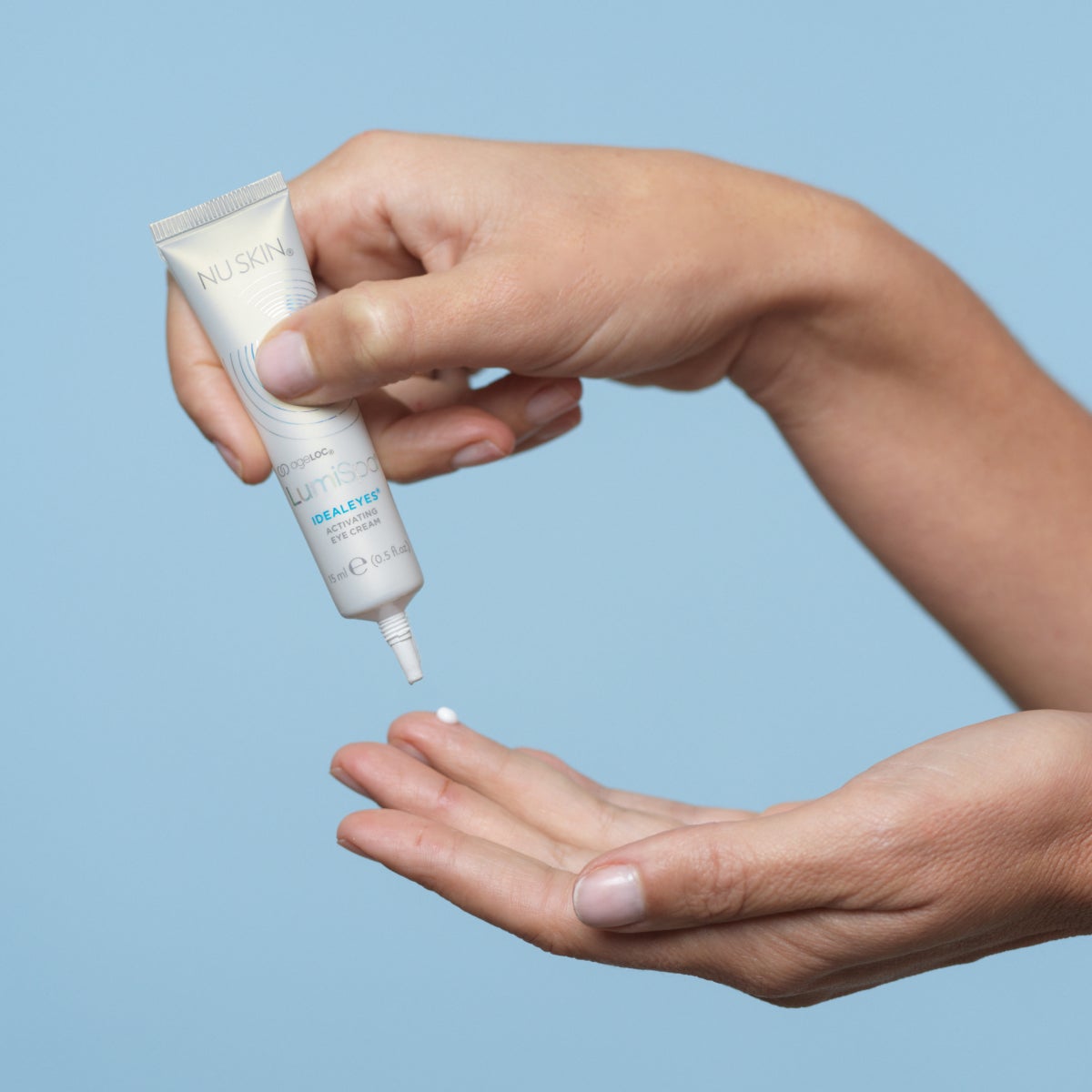 Apply ageLOC LumiSpa IdealEyes on the skin around the eye (do not apply on the eyelids or eyes themselves) after you cleanse and tone your face. Following the bone structure around the eye area, glide LumiSpa Accent iO using slow gentle motion. The device will pause briefly after 30 seconds indicating that it’s time to move to the other eye area.